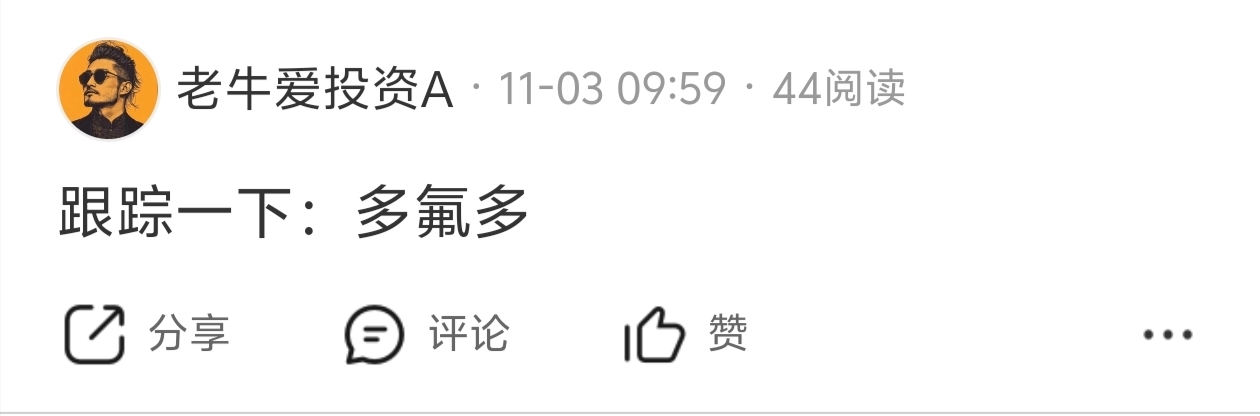 老牛在11月3日水下分享的:多氟多!大家还满意吗?