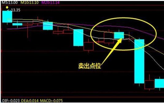 4,卖出点位:股价如果有效站上5日线,一般将会向10、20日线方向上升。如果在这个地方受阻、股价再次展开下跌,则买进的筹码,可以视情况卖出。(上图)