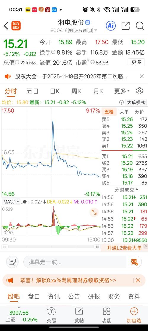 交易所2025年11月7日公布的交易公开信息显示,湘电股份因成为有价格涨跌幅限制的日价格振幅达到15%的前五只证券上榜。湘电股份当日收报15.21元,涨跌幅-5.12%,偏离值15.13%,换手率8.81%,成交额18.45亿。