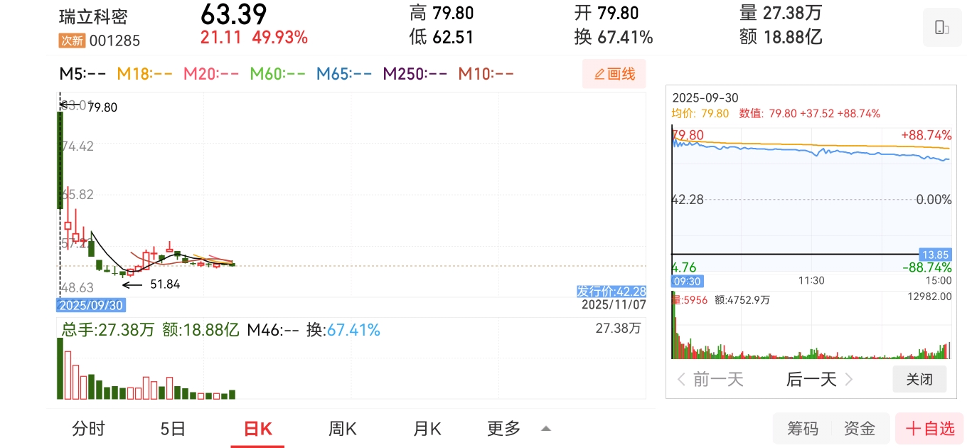 交易所2025年11月7日公布的交易公开信息显示,德力佳因成为无价格涨跌幅限制的证券上榜。德力佳当日收报70.52元,涨跌幅51.07%,偏离值71.34%,换手率71.34%,成交额18.50亿。