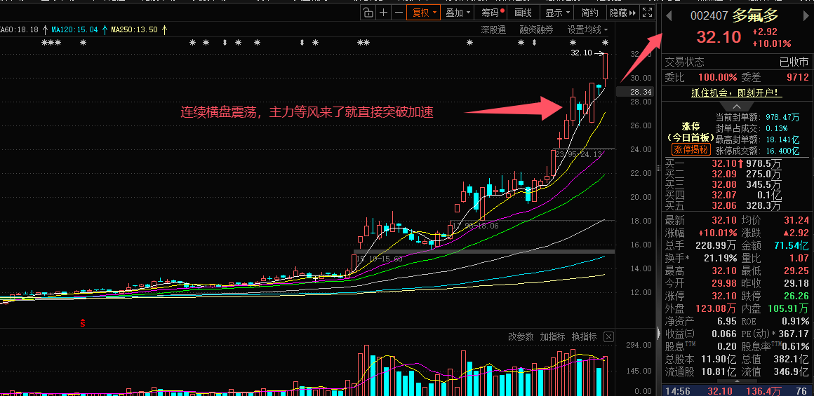 还有昨天晚上复盘发的几个隆基绿能,多氟多,特变电工,今天都还不错的。尤其是多氟多这是我前几天就在说的票嘛,不知道有没有朋友记得,当初六佛磷酸锂我复盘了三只,$多氟多(SZ002407)$$天赐材料(SZ002709)$、天际股份,今天锂电池板块直接暴发了。天际股份早上直接拉板,我眼看情况不对,直接跟了一手多氟多,而且天赐材料早上还是高开的。其实今天这一手操作也是感觉,感到到这里来了情不自禁的就要动手买它,一买就对了,多氟多今天跟随涨停了,看来下周是要走一波加速的节奏了。