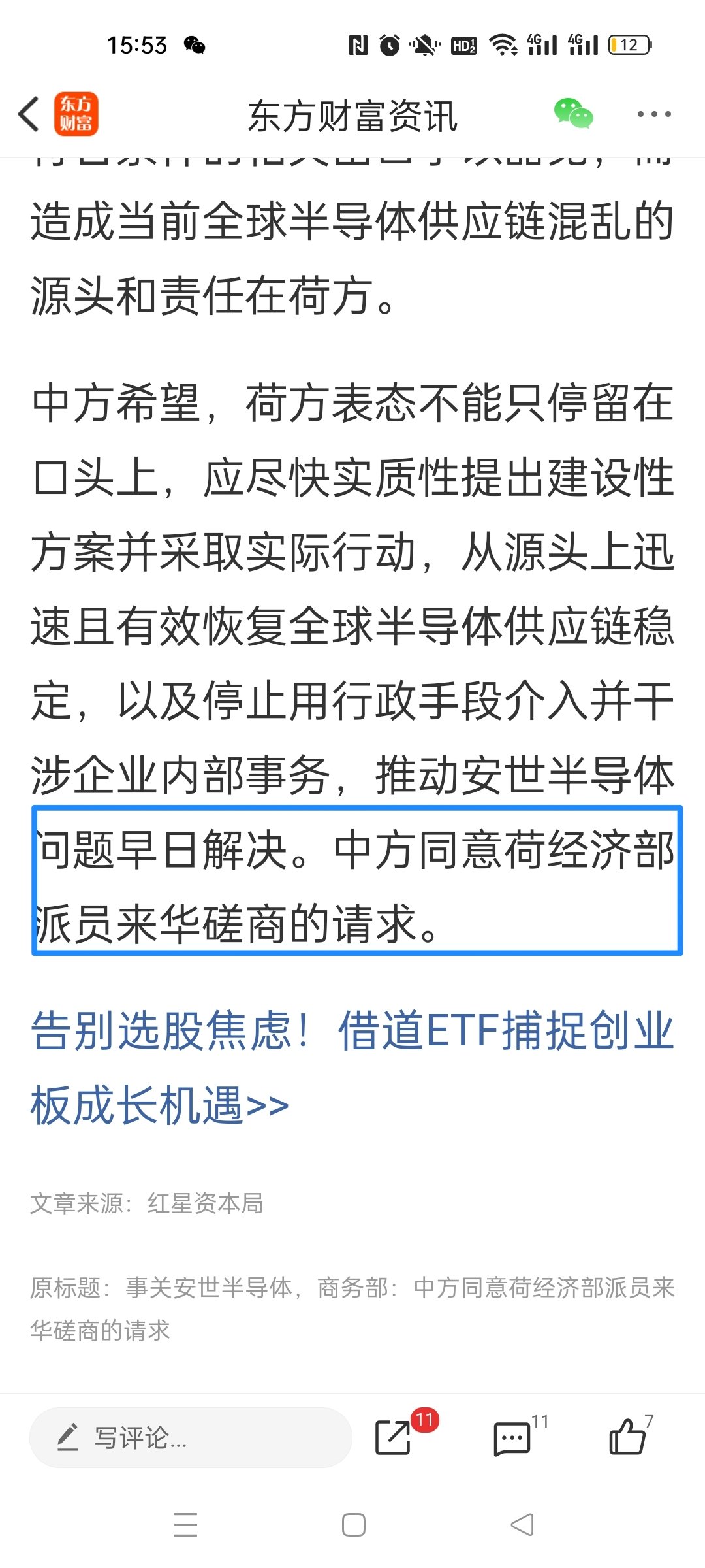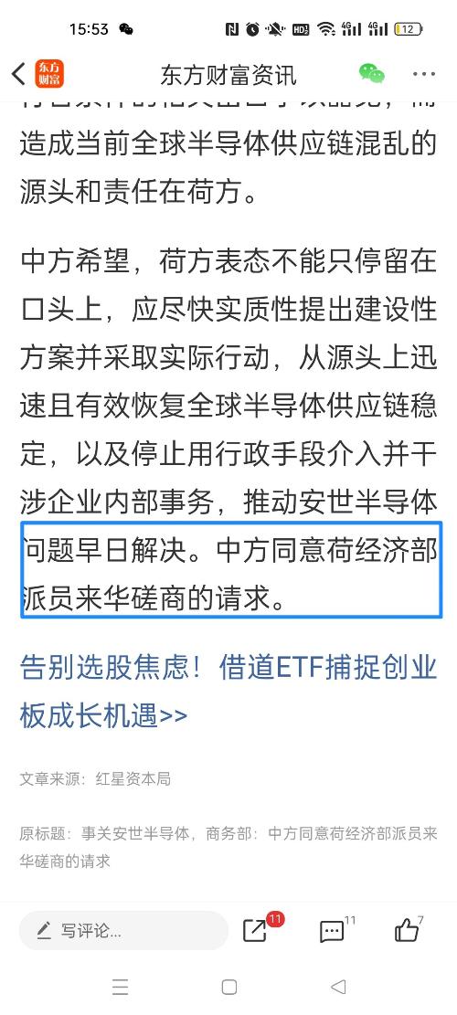 红星资本局11月8日消息近日,荷兰经济大臣卡雷曼斯在个人社交媒体账户发布关于安世半导体问题的声明。今日,中国商务部新闻发言人就此表示,中方注意到荷兰经济大臣卡雷曼斯于11月6日发表的声明,但截至目前尚未见到荷方在停止侵害中国企业合法权益和恢复全球半导体供应链稳定方面的实际行动。