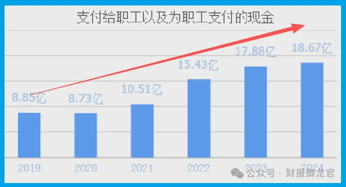 公司员工薪酬连续四年增长,2024年更是达到18.67亿元的历史新高。