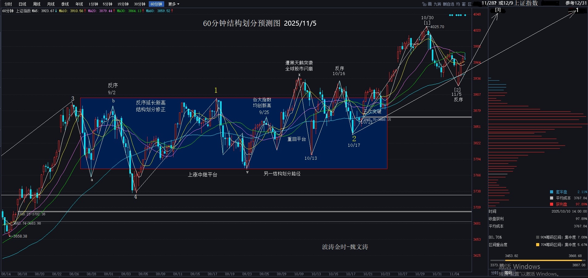 11/5小级别时间窗出现反序,(3)的结构或有两种震荡盘升路径选择。