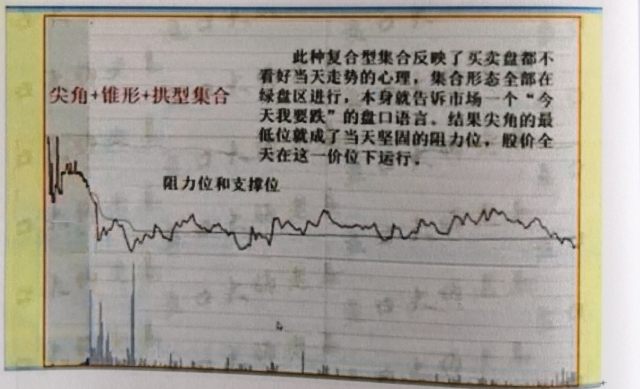 在复合型集合形态中,影响股价波动方向的因素比单纯型集合形态要复杂,其对股价的牵引力作用也相对弱(互相抵消)。但我们也能从中分析出一个主要形态来,比如可以从形态的大小、买卖盘的对比度等因素来判断出多空双方对当天股价走势的厚始意图,研究他们仍然有一定的参考价值。