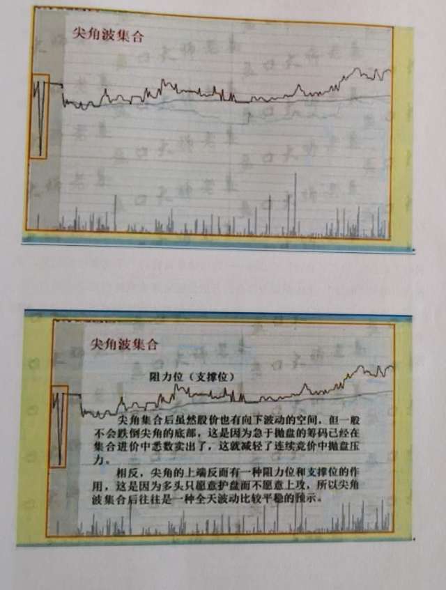 尖角集合竞价也是多空双方买卖意愿极大反差的结果,只是图形与锥形正好相反,其集合的特点也是卖出价和买入价都是一种跳跃性出现,顺序是先由高位卖盘一一在有跳跃性的低位买盘一一然后再来跳跃性的高位买盘,由于买卖盘之间的时间差很短,于是就出现了长形尖角状的集合图形。