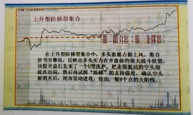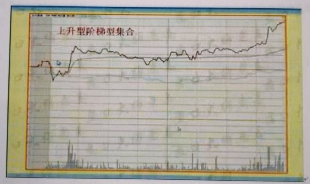 阶梯型集合是指多空双方的买卖价格分为开个时间段的密集吻合,实际上是两个以上的一字型集合,只是在集合的价位上有分歧而已。