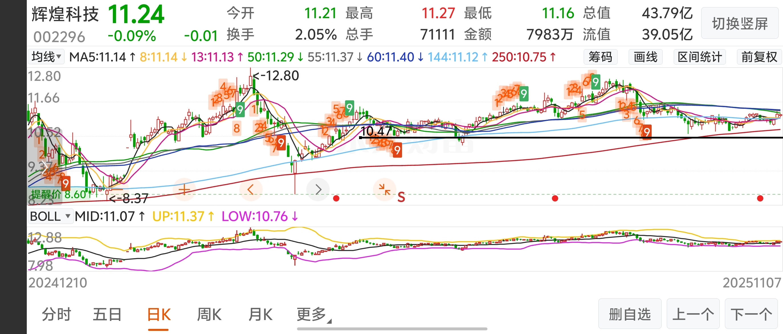 辉煌科技回落到黑线是最佳建仓位置,重点关注,明年一季度目标价15元+。