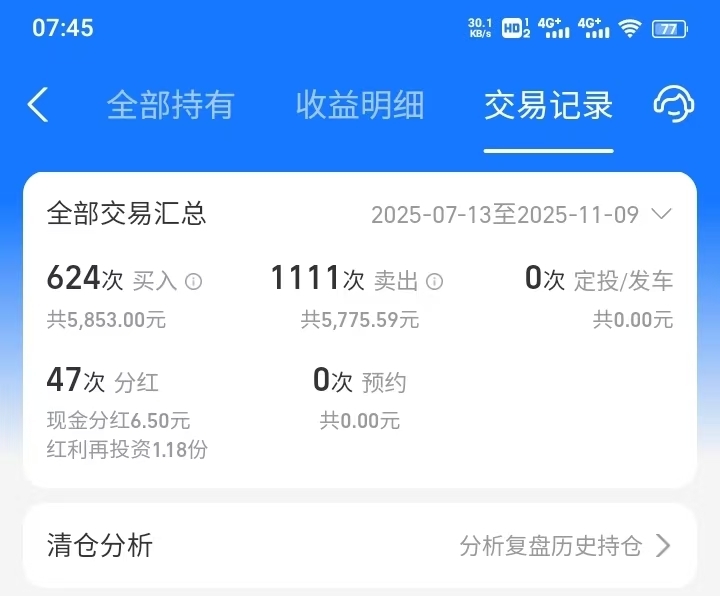 从2025年7月13日到2025年11月9日(约119天):-总盈利:6.5+6