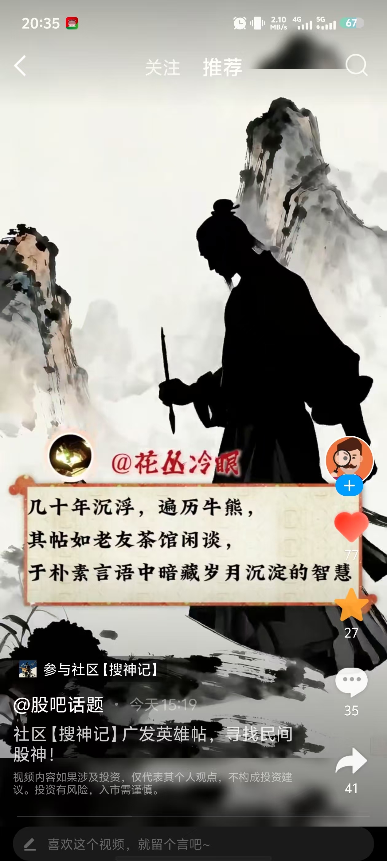 大家可以积极参加东财这项活动,把真正的民间高手推举出来,给大家提供学习的样板!@股吧话题 #社区牛人计划# #社区【搜神记】搜寻民间股神#