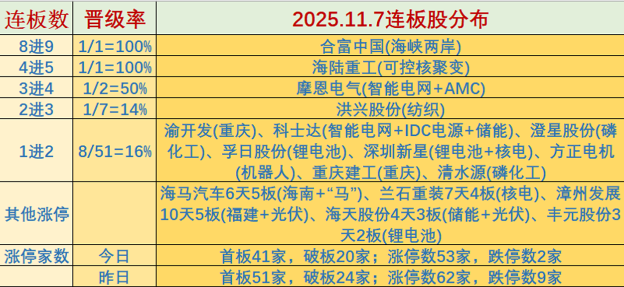 最强人气:合富中国9、海陆重工5、海马汽车6天5、漳州发展10天5、摩恩电气4(赛道分别属于:海峡两岸、钍基熔盐堆、海南+马字辈、福建、电网设备)