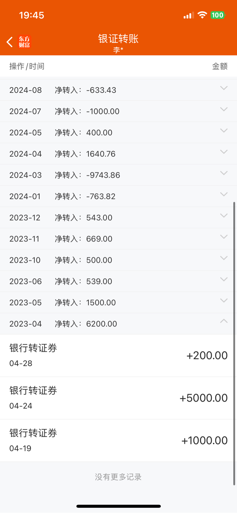 在平台记录下时间.2023年4月19第一次尝试,中间两次毛毛盈利因为负债需要取现