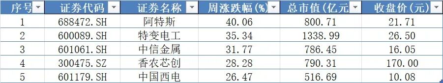 500亿元以上的公司中,本周涨幅最大的5只股票,3个与“电”有关:阿特斯、特变电工、中国西电。