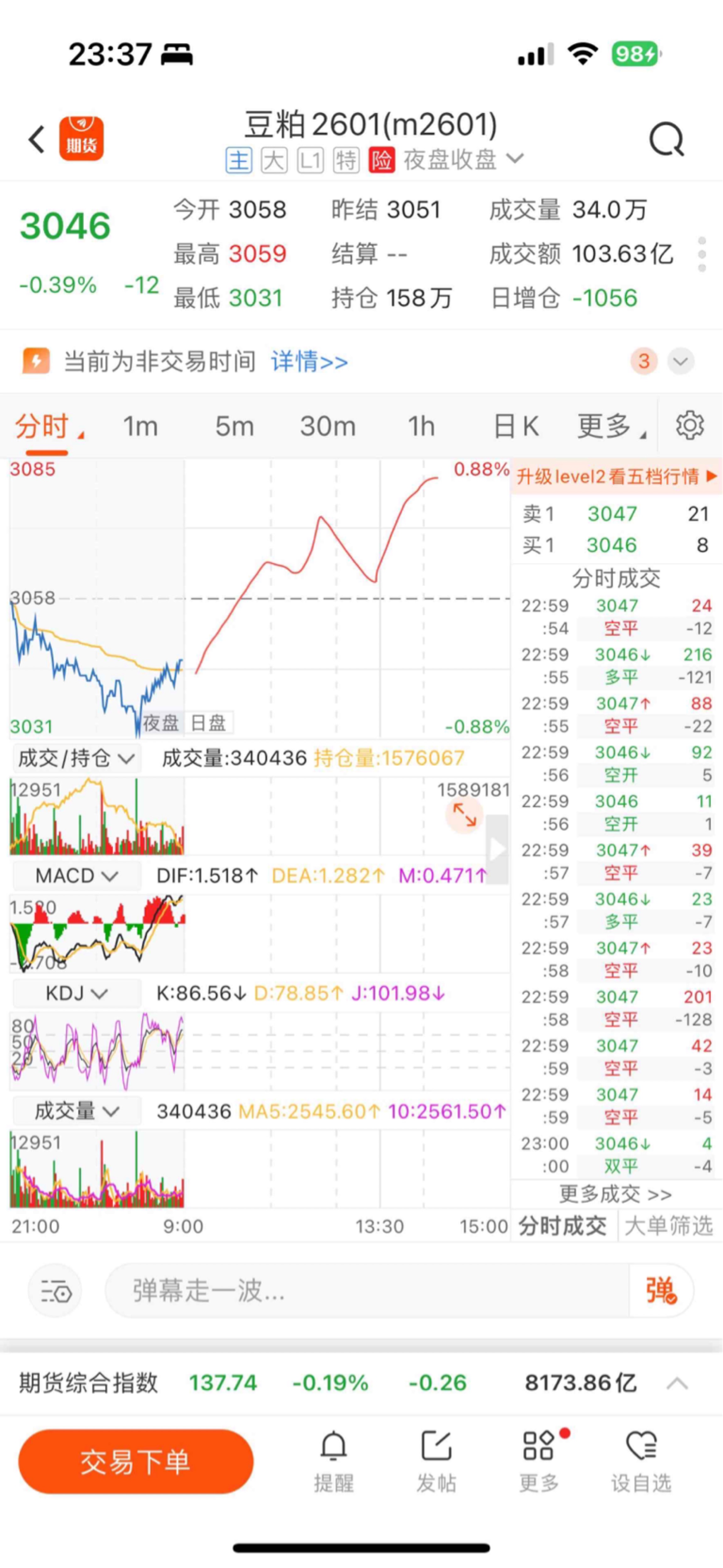 $豆粕2601(DCE|m2601)$ 明天我还有机会上车吗 不会开盘就高开几十个点吧