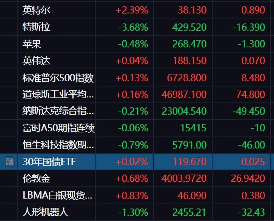 大型科技股涨跌不一,特斯拉跌超3%,谷歌跌逾2%,苹果、微软小幅下跌;奈飞、亚马逊、Meta小幅上涨。其中,微软连跌8天,创2011年11月以来最长连跌天数。芯片股方面,闪迪涨超15%、续创历史新高,英特尔涨超2%,英伟达盘中一度跌超5%,希捷科技微涨;ARM跌超3%,AMD、超微电脑跌逾1%。