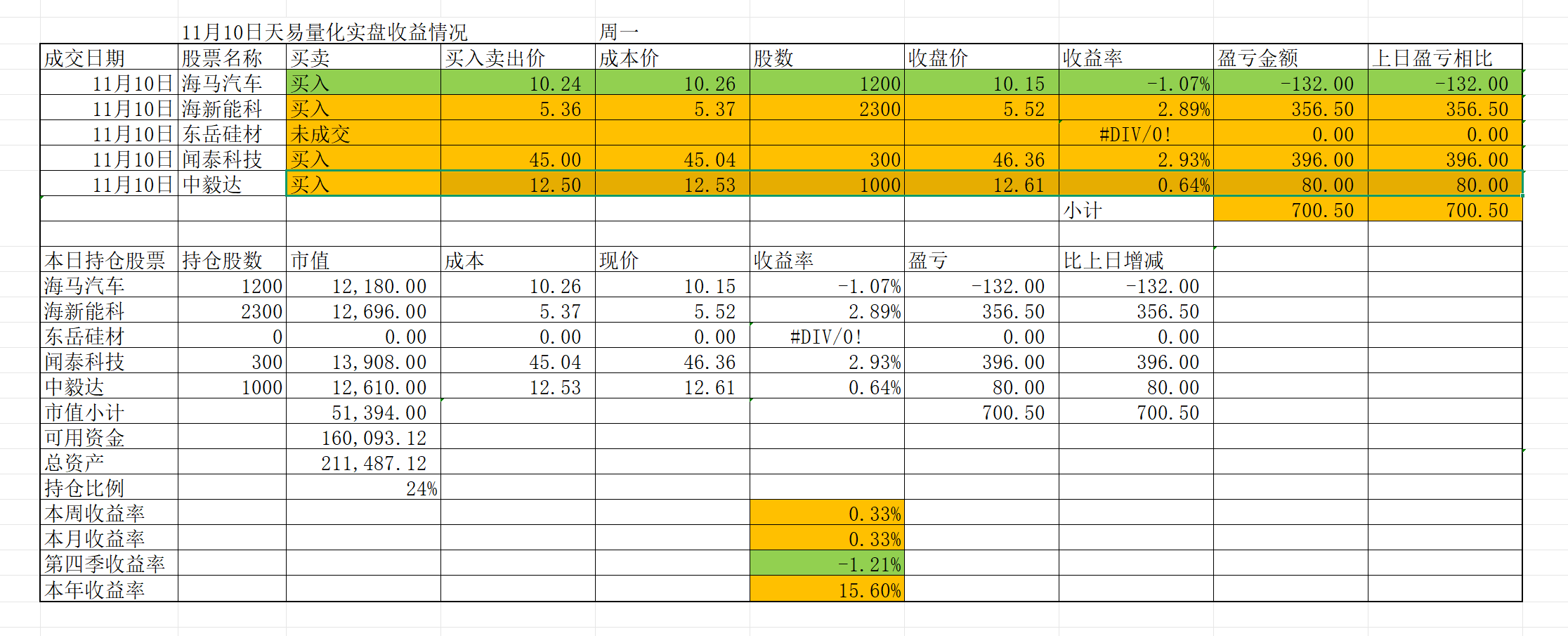 【11月10日天易量化实战复盘】海马汽车下午烂板今天周一选择了海马汽车、海新能科