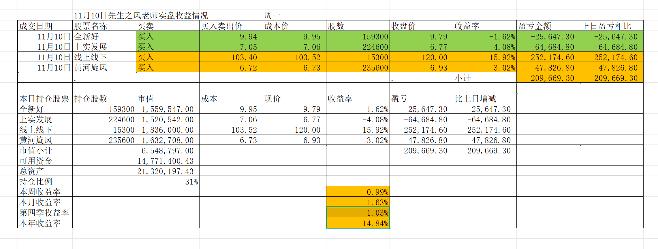 【11月10先生之风实战复盘】线上线下20CM涨停今天开仓先择了全新好、上实发展