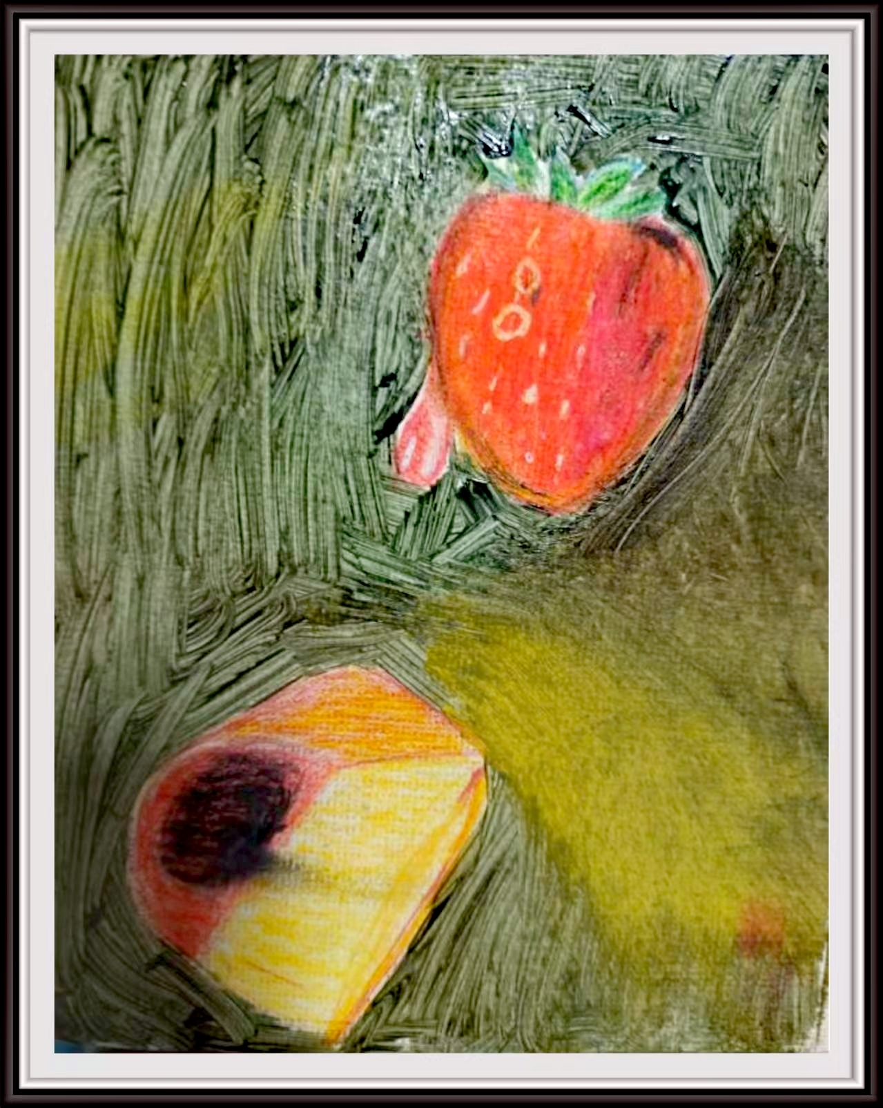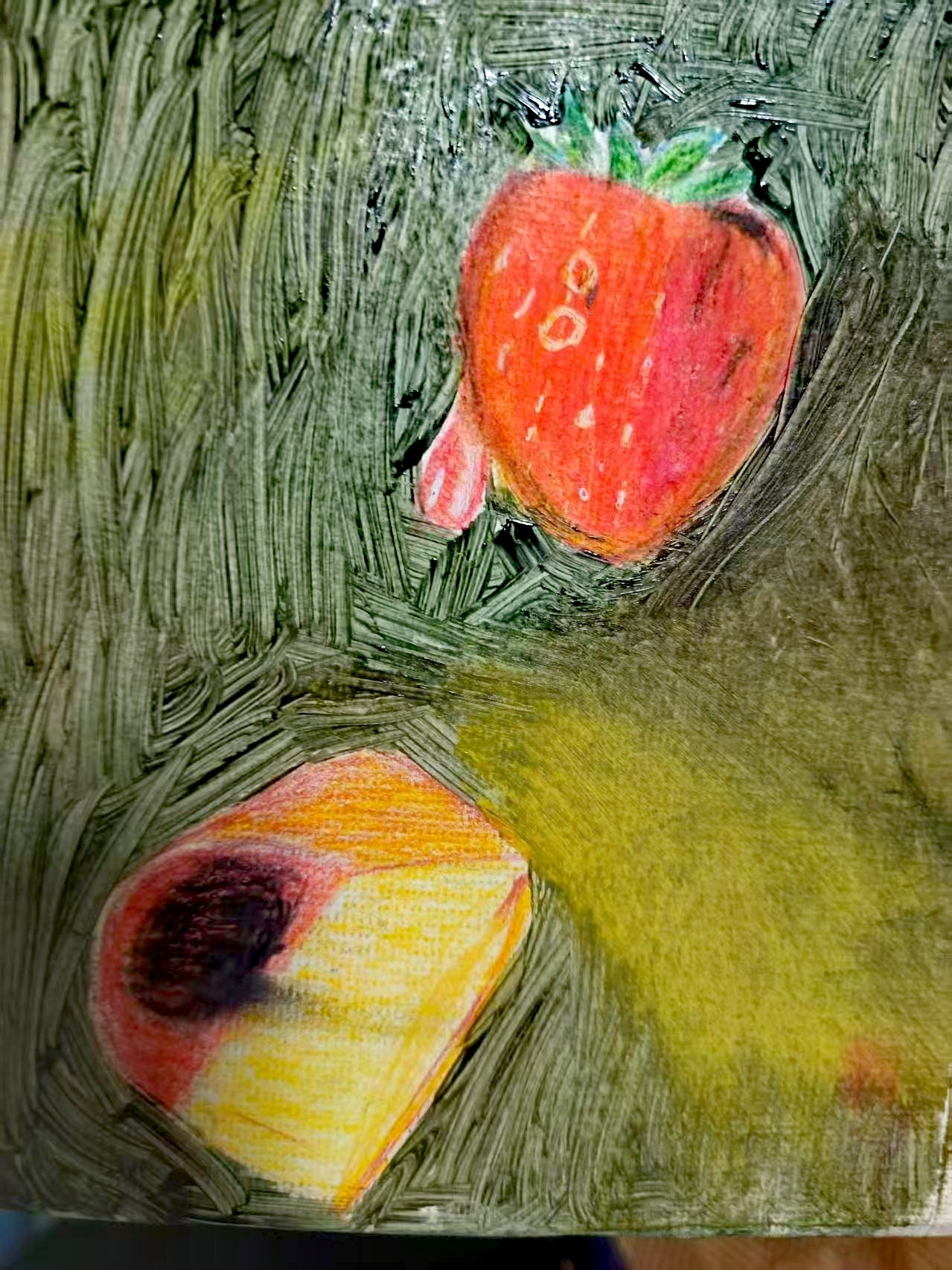 彩铅画果,油彩衬底,美食诱人,满心欢喜。