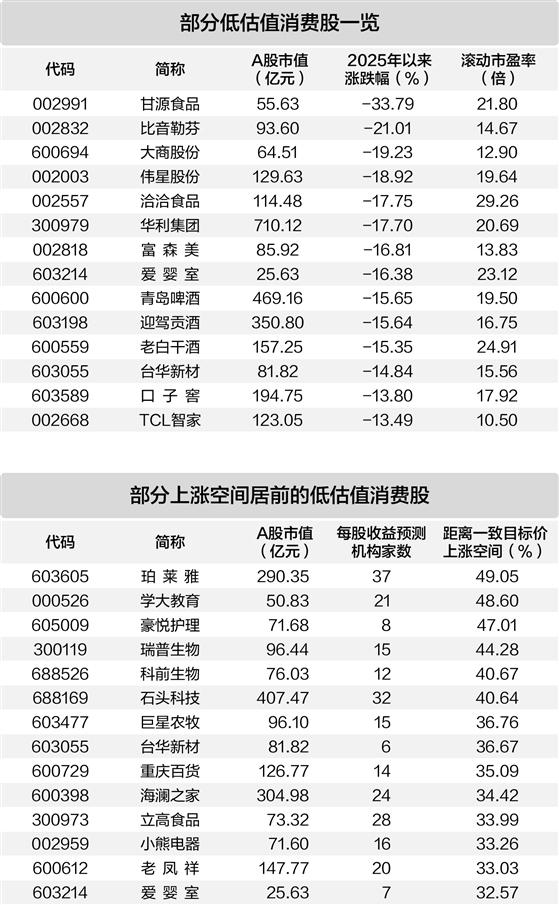 多只消费股具备估值优势
