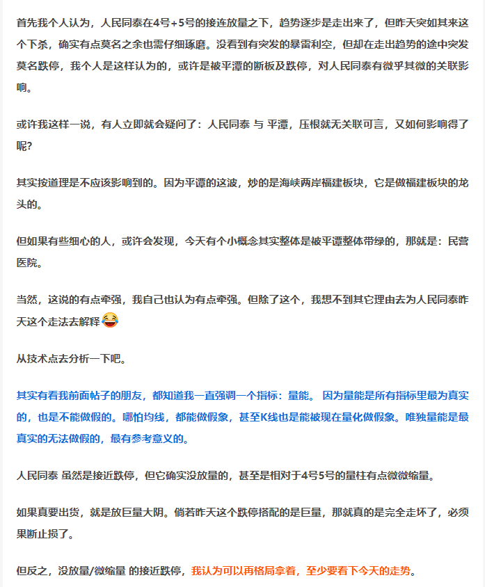 11月7日凌晨复盘完之后,就对 人民同泰做出个人的分析,
