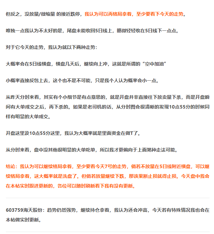 另外今天手机看盘,人民同泰+海天股份,如有特殊情况,会在本帖更新追加内容。