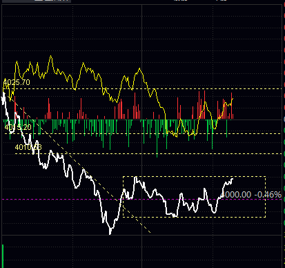 下跌缩量,开始出现逐级抵抗,4000附近有小幅承接