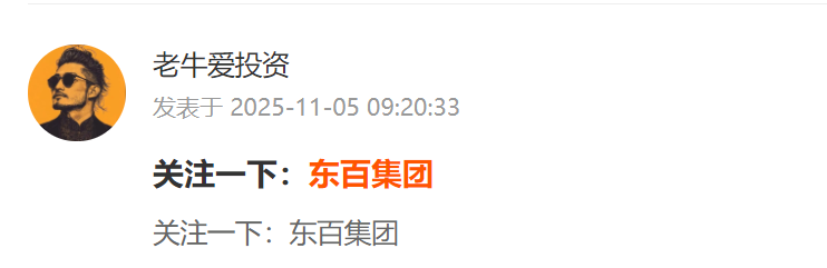 老牛在11月5日分享的东百集团今天又板了!实力无需多言!认可老牛的朋友,快来一波