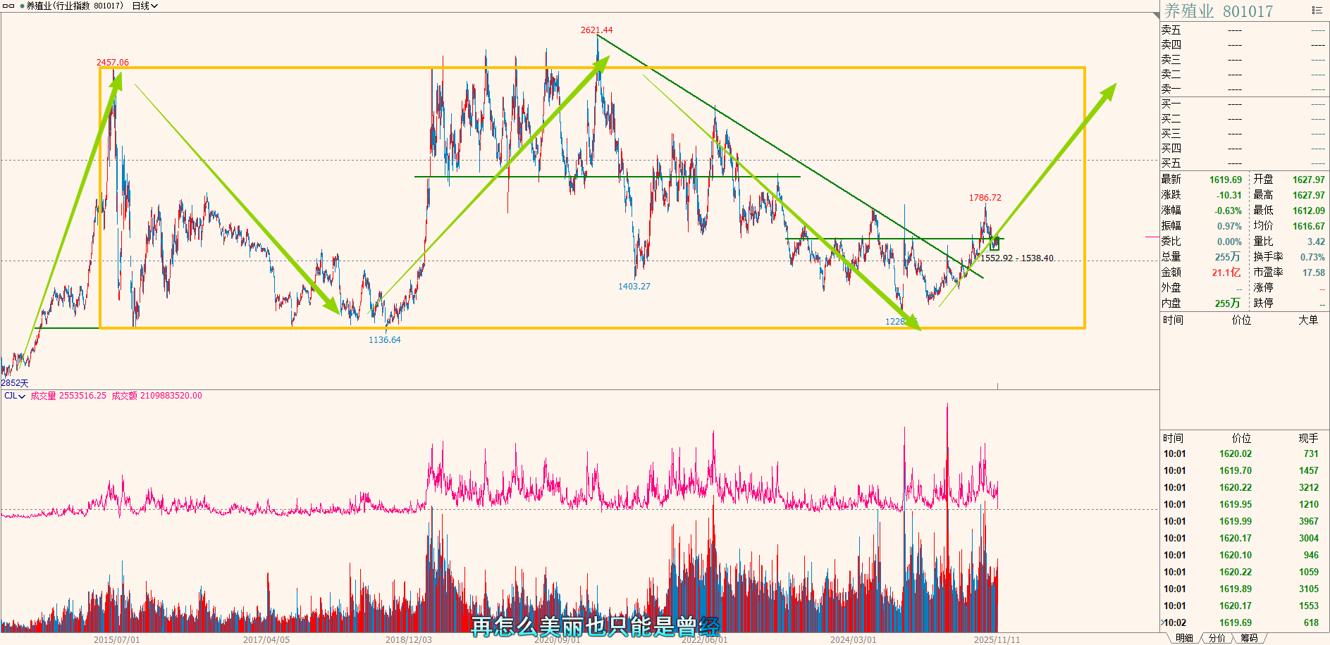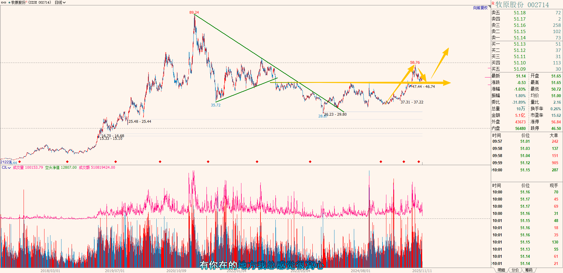 养殖板块,当前呈现上涨趋势,接下来可以关注!作为养殖龙头,牧原股份在底部区域震荡