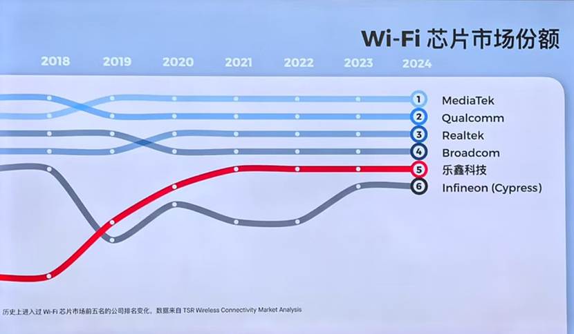 目前,乐鑫已经成为了全球大Wi-Fi领域的第五名,仅次于联发科、高通、瑞昱和博通,而且有机会在1-2年内成为第四。