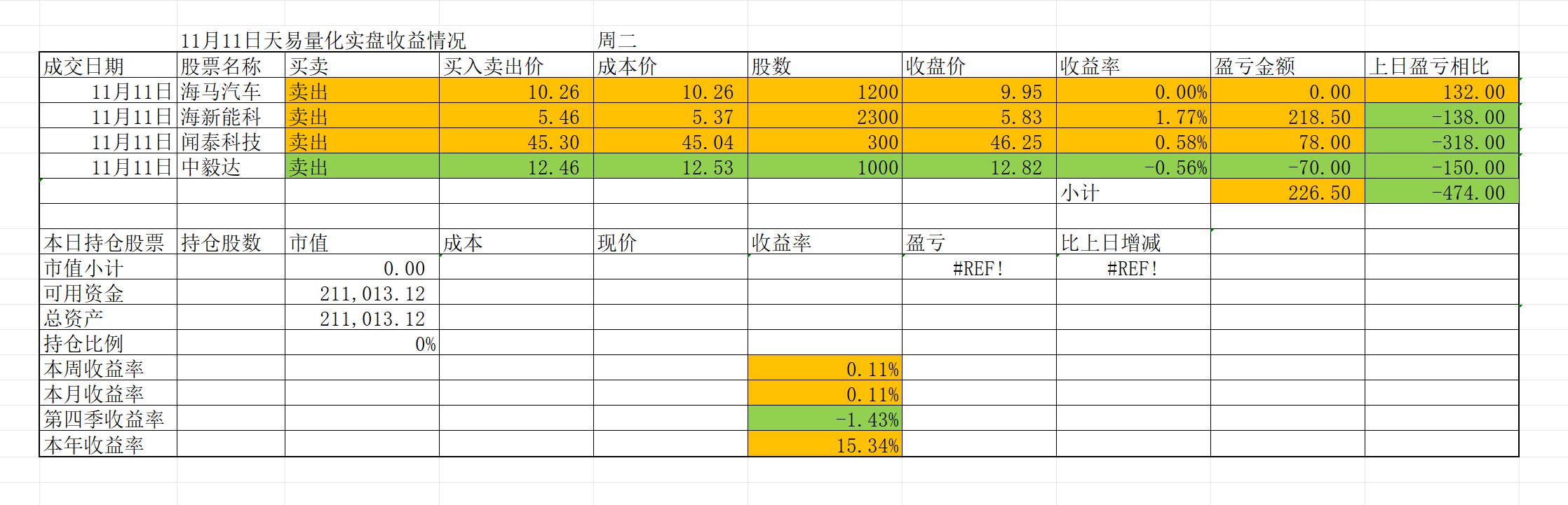 【11月11日天易量化实战复盘】回吐是主基调
