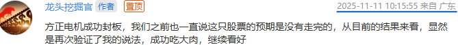 方正电机:今天的表现还是比较不错的,再次刷新了近期的一个高度,虽然说盘中出现过炸盘的一个情况,但整体还是在上升的趋势当中,主力也是净流入的一个状态,目前来看,预期还是有的,继续格局。
