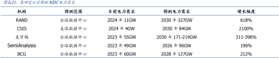 随着“星际之门”等大型项目计划的宣布以及CSP各厂商Capex的持续上修,爆发式增长的算力需求已成为确定性趋势,带动电力需求激增。据Rand估计,2030年全球AIDC电力需求将达到347GW。