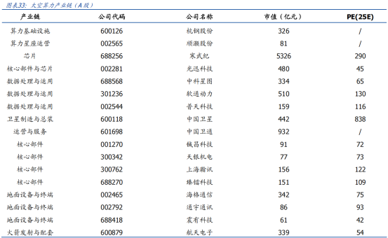 关注在相关产业链提前布局的公司如美股SOCE、RKLB等,以及A股的顺灏股份、杭钢股份、普天科技、中国卫星等。