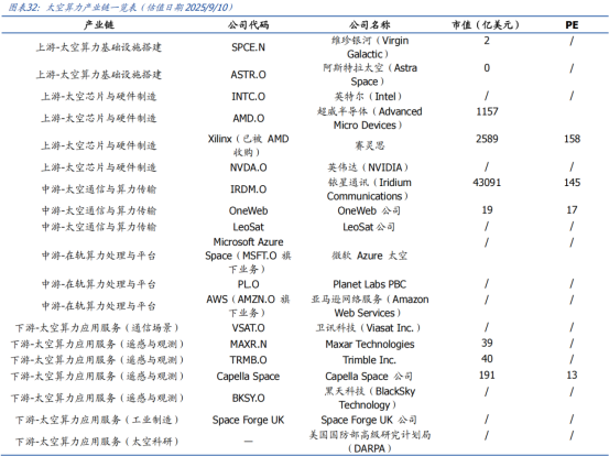 下游是太空算力价值释放的核心场景,通过多样化应用将技术优势转化为实际生产力,覆盖地球观测、通信服务及新兴领域等方向。地球观测借助在轨数据处理提升决策效率,通信服务依托算力优化拓展服务边界,新兴应用如自动驾驶、智能交通则通过太空算力突破地面场景限制,全方位推动太空算力从技术探索走向产业落地,赋能多行业升级。