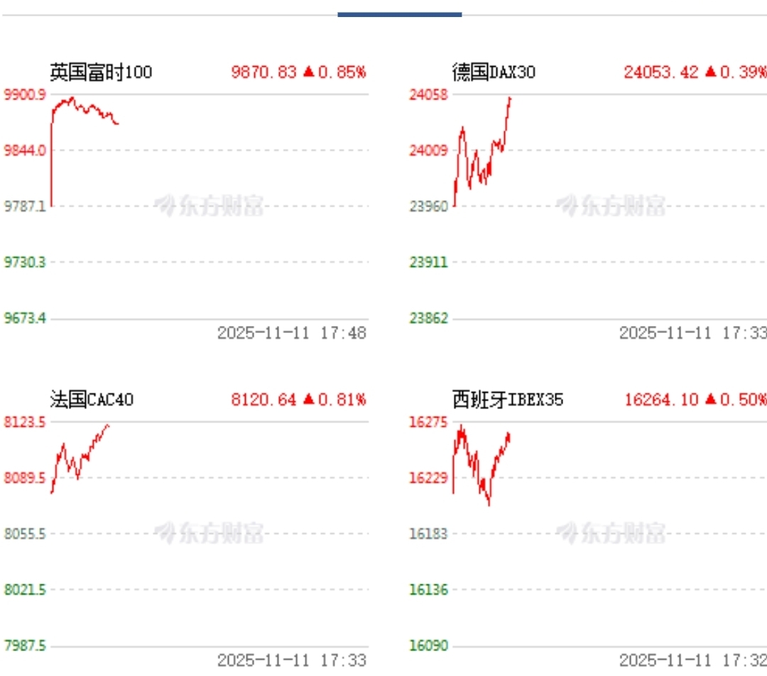 欧洲市场全面高开后涨幅加大,连续第二个交易上涨。