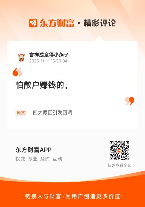 怕散户赚钱的, 我在《四大原因引发回调》的评论获得了大家的关注。