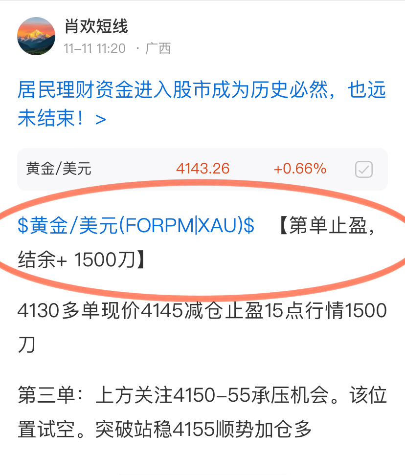 第1⃣早盘4123多单止盈于4138拿下15点1500刀。