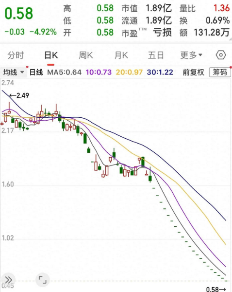 上市8年了,今天是它最后一个交易日,退市已经无法改变,公司已连续20个交易日市值低于5亿,已触及交易类强制退市情形,明天该股就终止上市,两个月后可能会在老三板退市股交易板块挂牌交易。