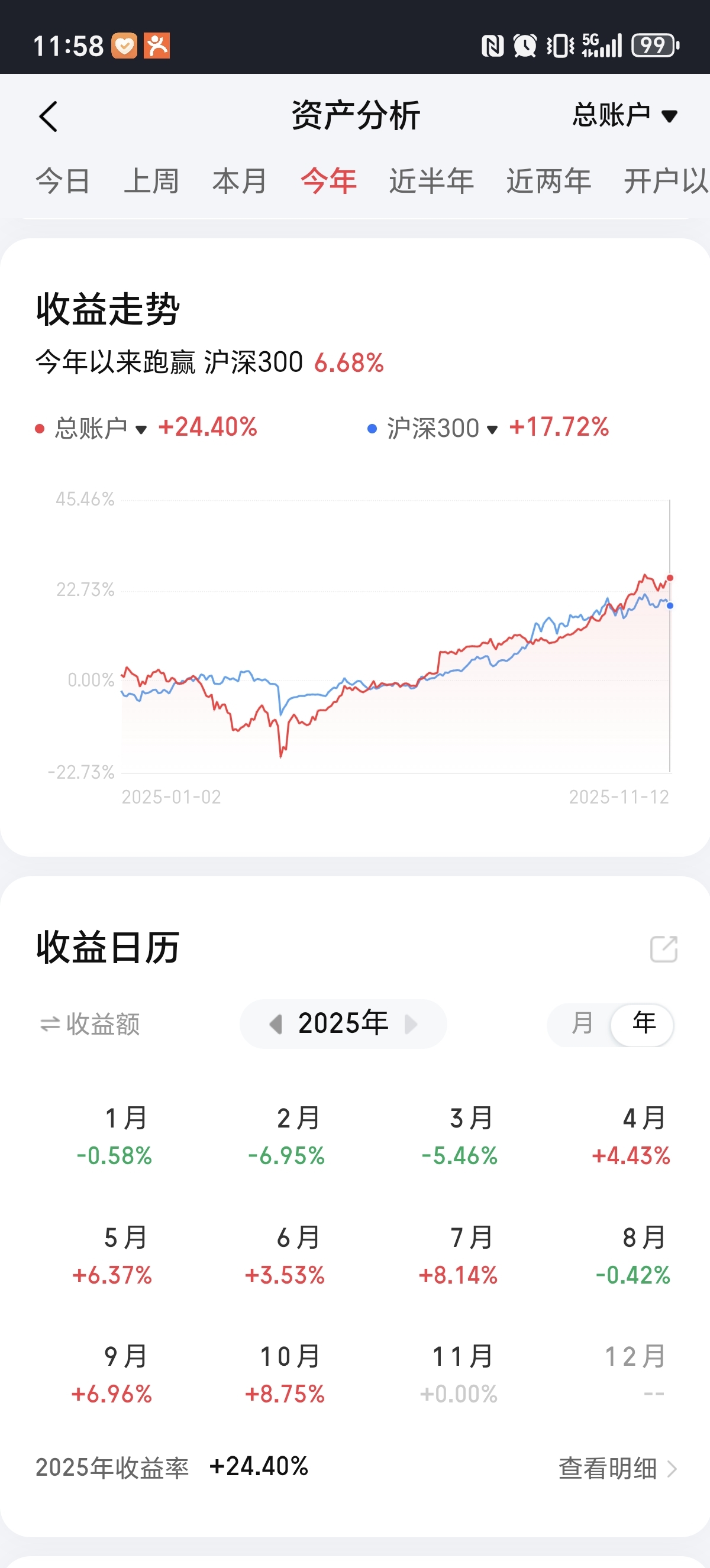 小号黄金+纳指基金稳扎稳打,收益率比较稳定,稳定在24-25%之间。