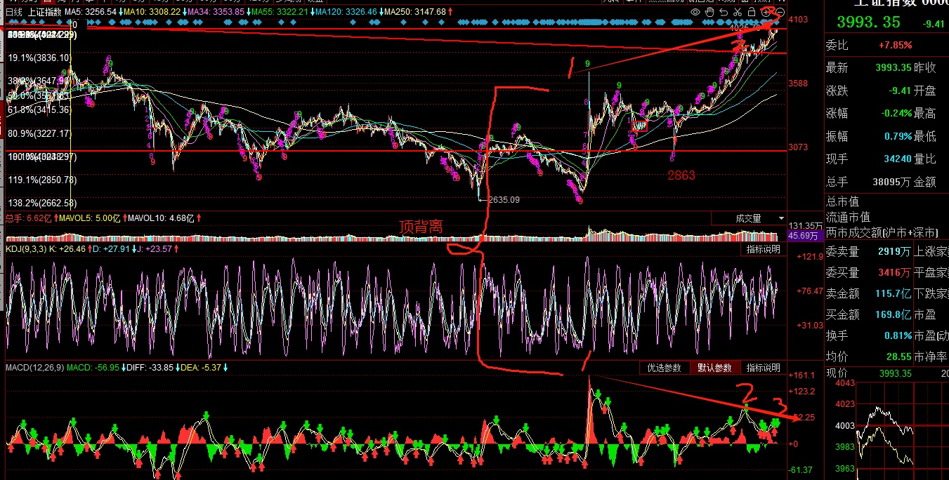 大盘应该在昨天或者今天放量上攻才能改变现在的纠结形式,如尾盘还不放量上攻阴跌不休,则上证指数的日线图的顶背离就越发严重,那么接下来的就是持续的阴跌回调,第一支撑暂看3830点,第二支撑3646点左右,谨慎操作。