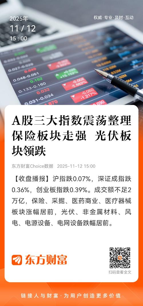 A股三大指数今日震荡整理,沪指险守4000点关口。截止收盘,沪指跌0.07%,收报4000.14点;深证成指跌0.36%,收报13240.62点;创业板指跌0.39%,收报3122.03点。沪深两市成交额19450亿,较昨日缩量486亿。