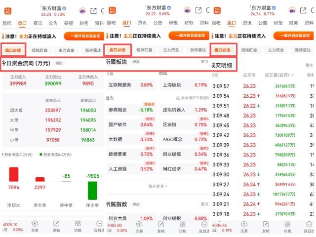 是不是总觉得看盘信息太散乱,切换页面到手软?这次我们重磅升级,把您最需要的功能整合在一个盘口签:“盘口必读”、“短线盯盘”、“主力资金”和“涨停雷达”四大功能分类助您高效决策,所有变化一屏掌握,只需一眼就够了!省去切换烦恼,让您盯盘更轻松,出手更精准!