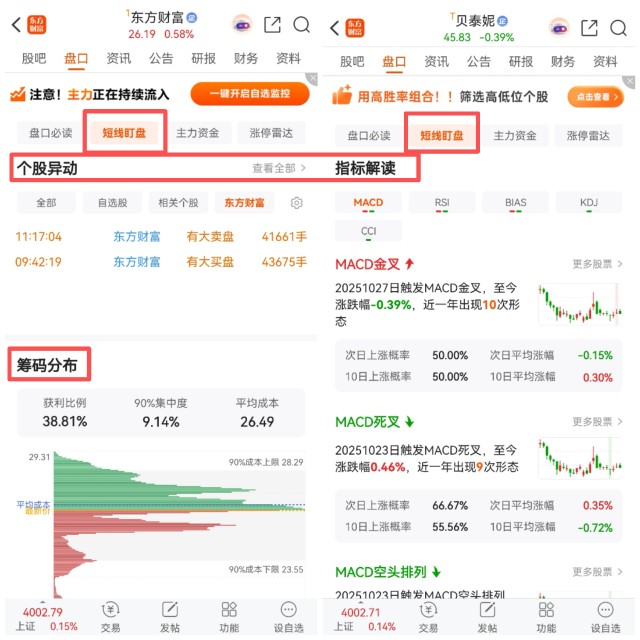 实时监控个股异动,快速了解个股筹码分布和平均持仓成本,指标解读统统拿下,盯盘功能更方便,无需切换至其他功能页面,所有动态尽在掌握: