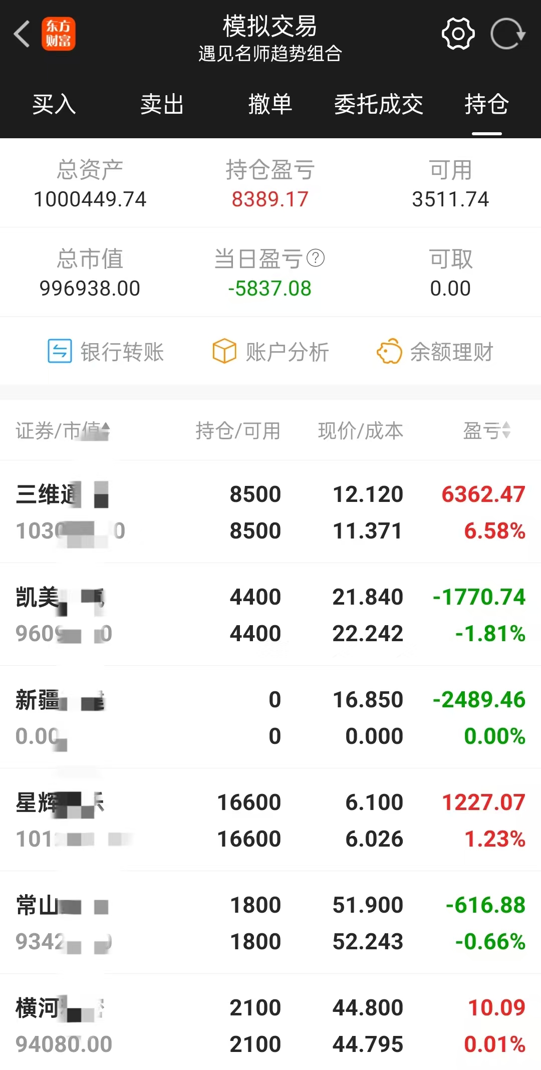 趋势交易法短线波段账户,今日净值曲线、调仓、持仓。#遇见明师趋势交易#