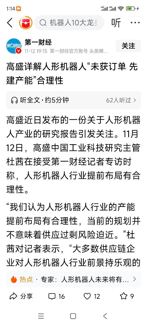 高盛也表示,大多数公司打算在接获实际订单后逐步扩大规模,因此当前规划未必意味着供应过剩风险迫近。该机构仍对人形机器人技术的长期趋势持积极看法,但需要监控关键机器人产品的性能和具体的终端应用,以评估技术拐点是否即将到来。