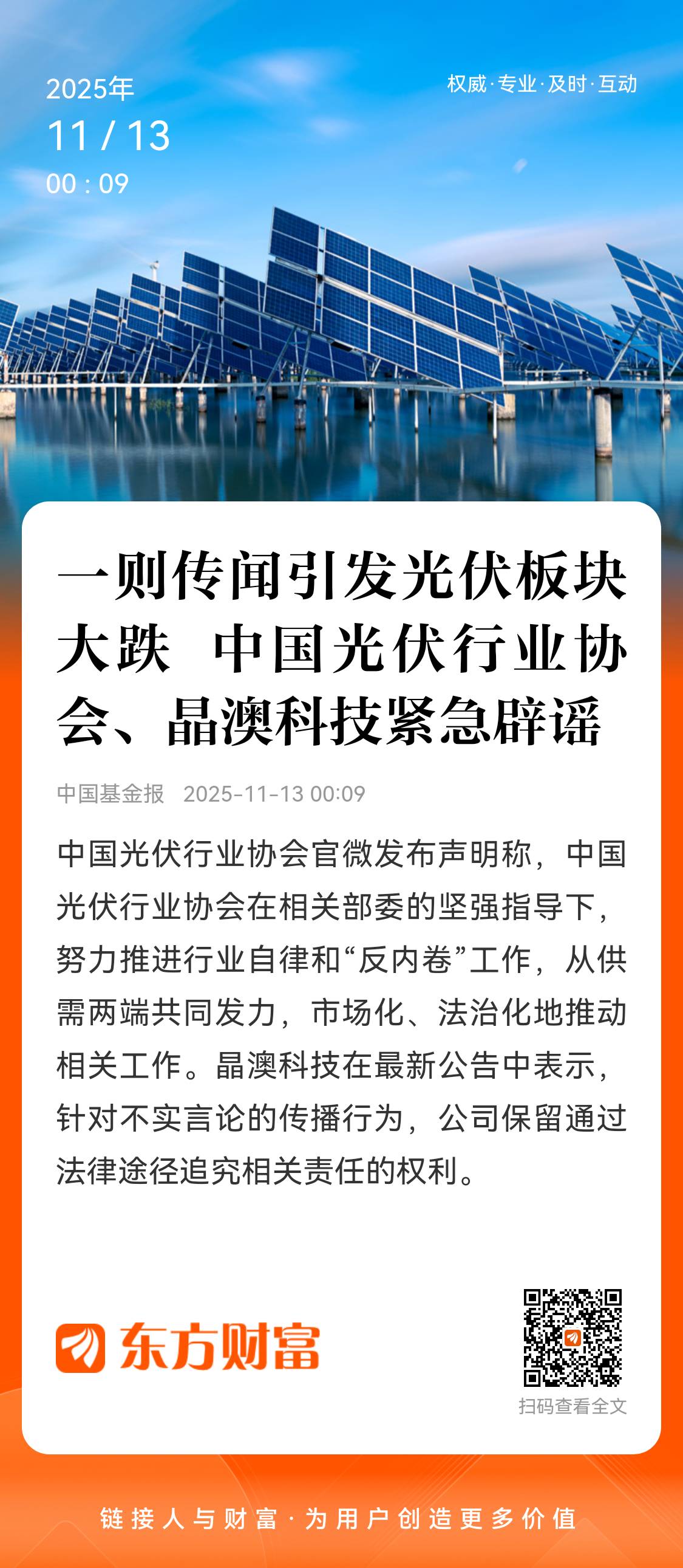 11月12日,中国光伏行业协会执行秘书长刘译阳在其微信朋友圈发文称:“请大家不要信谣、传谣。”