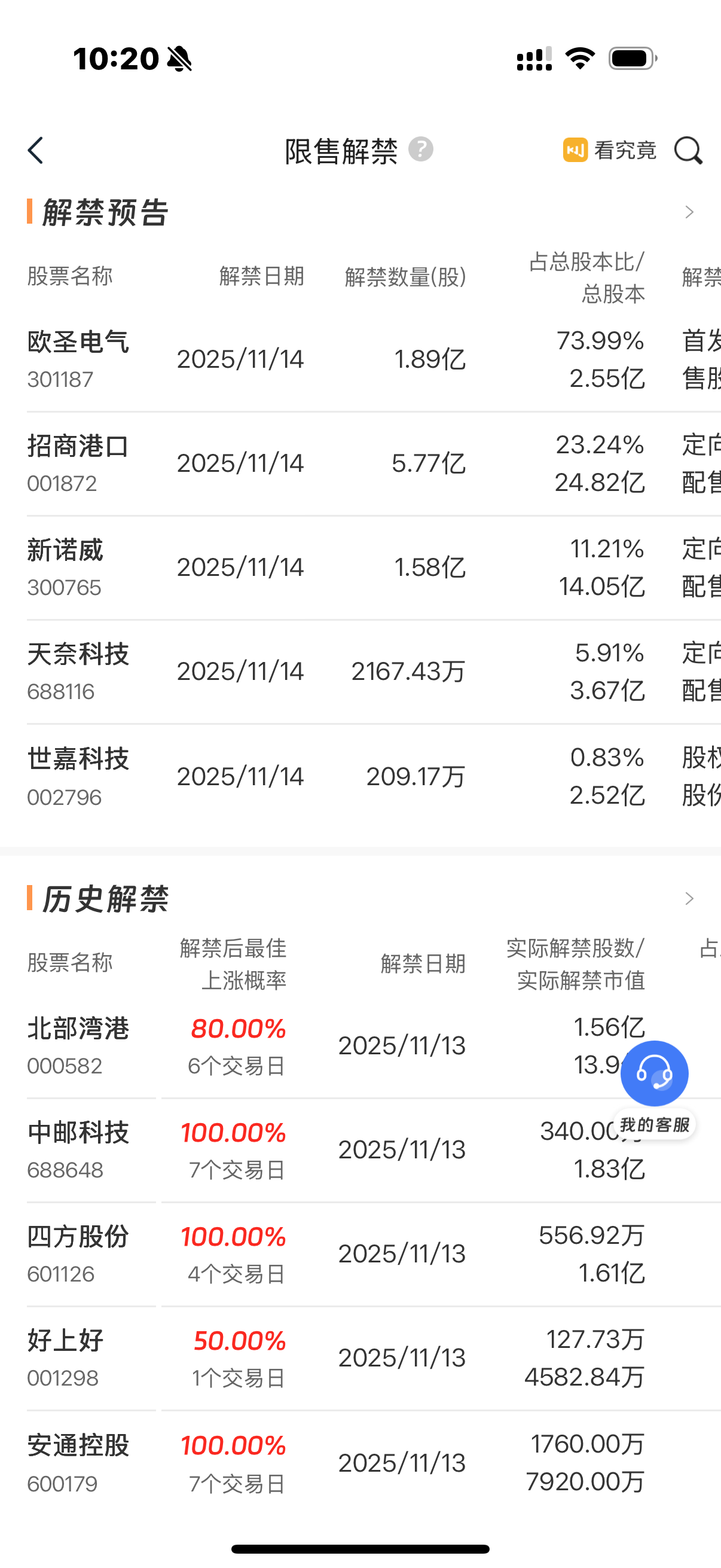 今日解禁好上好、安通控股、四方股份等票,这几票最近表现挺好,应该也能承接住,明天的解禁预告也出来了,有欧圣电气、招商港口、新诺威、天奈科技等票即将解禁$好上好(SZ001298)$ $安通控股(SH600179)$ $四方股份(SH601126)$