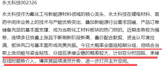 永太科技作为氟化工与新能源材料领域的核心龙头,今日如期刷新阶段新高,早盘盘中经历震荡分歧时,盘面承接力度格外亮眼,未出现恐慌性回落,充分彰显趋势韧性与资金认可。正是看到这份稳健承接,都督果断选择介入,后续股价顺势拉升、稳稳收涨,完美契合主升行情节奏。当前核心上升趋势未遭任何破坏,筹码结构依旧扎实,量能配合健康,短期向上动能充沛,后续仍有明确博弈空间,可继续耐心持仓跟随趋势。$永太科技(SZ002326)$