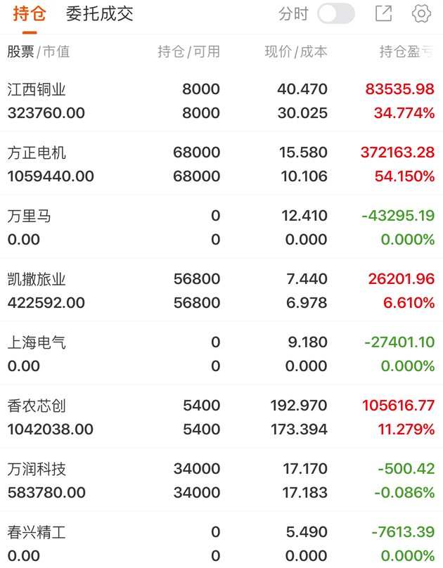 近期持仓记录: