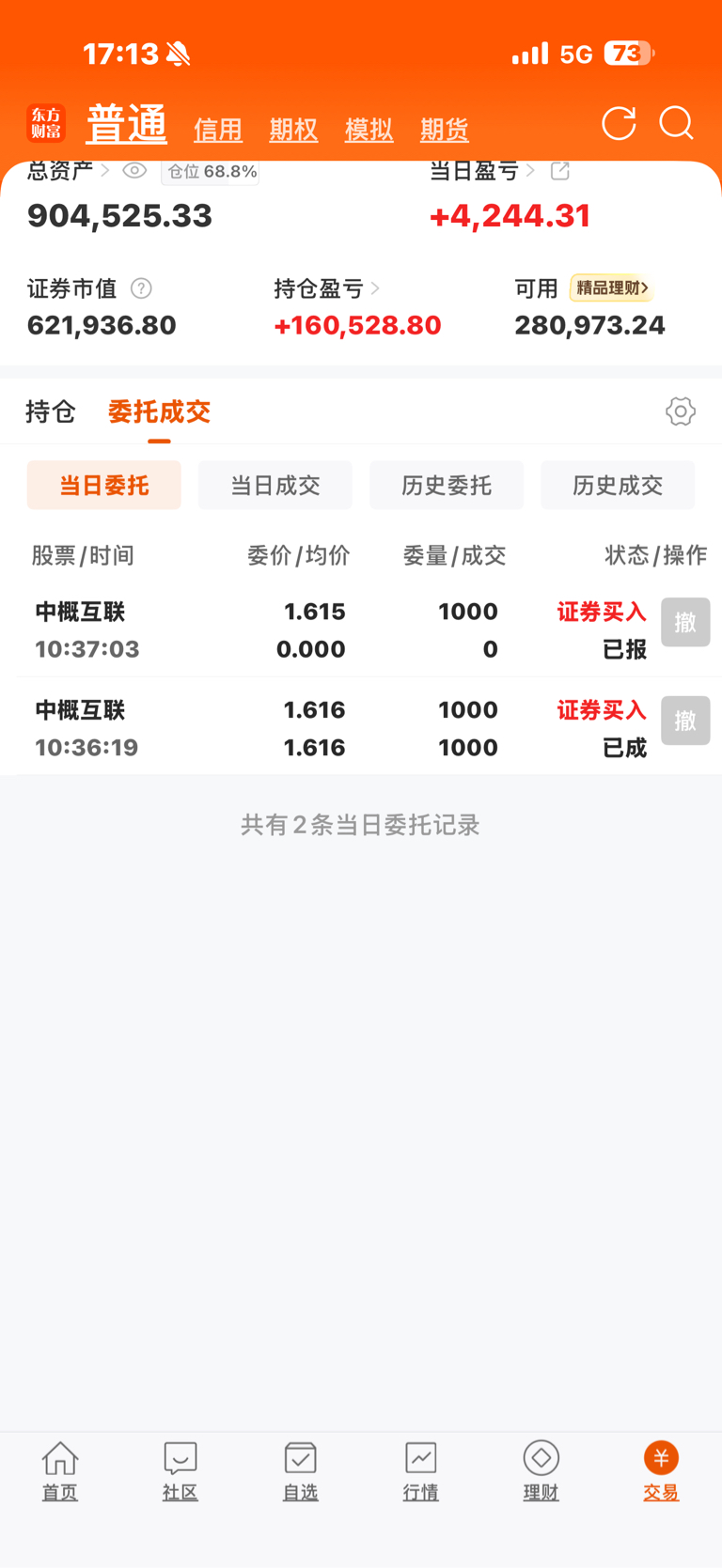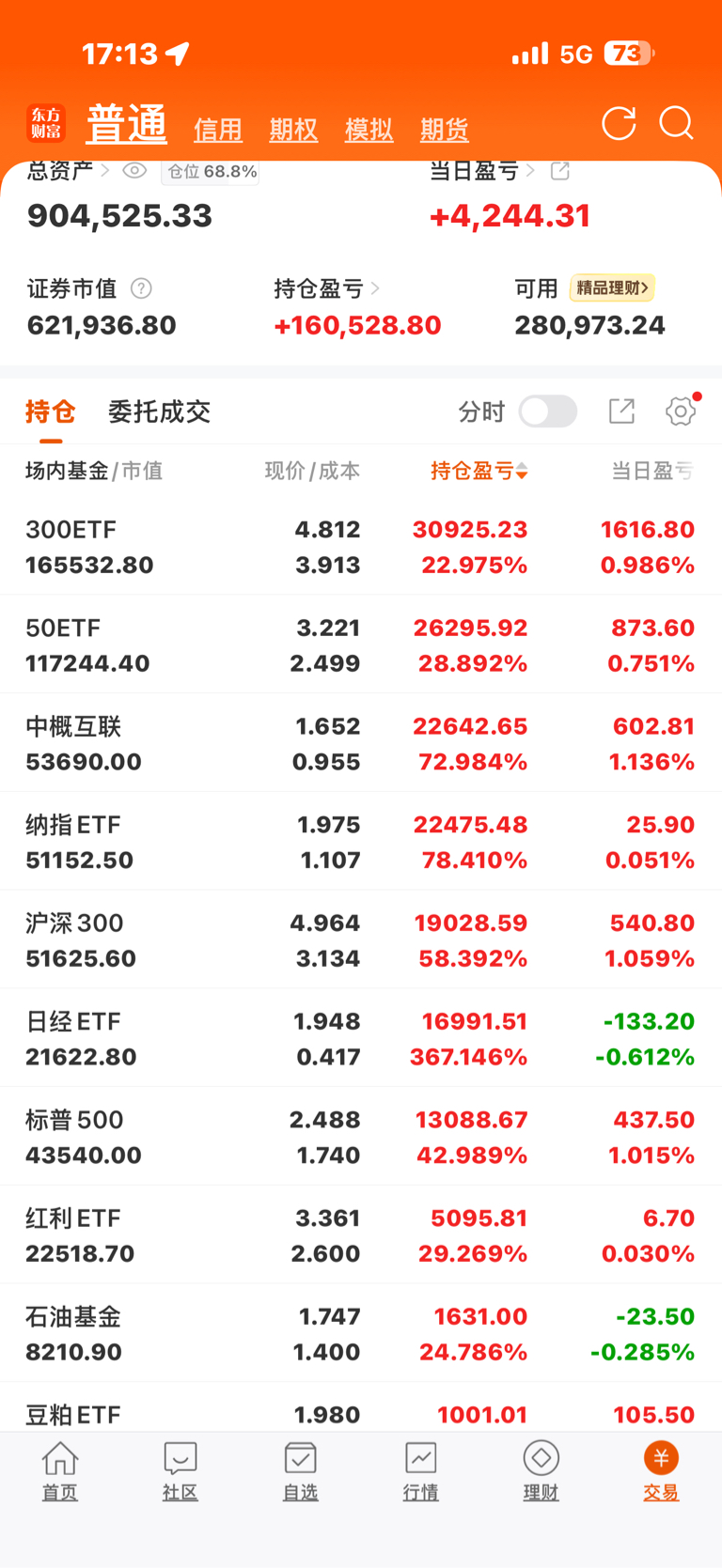 今日收益:盈利4244.31元